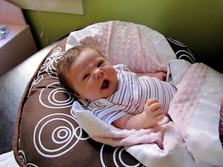 When we got to the hospital, it took about an hour to get settled in our room. They ended up starting me on pitocin at 1 am. Soon, I started having small/cramp-like contractions which lasted until about 8 am. Chad and I were able to sleep through these which was nice - especially knowing what was coming ahead. At 8 am, my midwife came in to check me and break my water. I was dilated at a 2 at this point. As soon as she broke my water, the contractions started coming on HARD and STRONG. I knew I wanted an epidural, since I was being induced, so, I asked for one right away. However, the anesthesiologist was busy with a c-section for at least another hour. I thought, "No big deal...I can handle an hour of hard contractions. I've done this before". But whoa...they just didn't slow down! I got some neumorphine (with memories that it was WONDERFUL with Livie), but it didn't really take any edge off the pain this time. By 9:30, they had checked me at least 3 times, and each time I was dilating more and more. Around 10am, the anesthesiologist was still busy :(...and they checked me again...I was at an 8. They told me at that point that I wasn't going to have time for an epidural. I was so scared...but thought "God can get me through!". Just then though, the anesthesiologist was free and outside the door :). She came in and administered an intrathecal shot (a local drug that's similar to an epidural - it numbs the pain - but you can still feel and move your legs). SO GREAT...but also really weird to go from so much pain to nothing. About that time too, I found out my midwife had to leave and go deliver another baby...so, they took me off the pitocin until she got back. I still had contractions during that time, but they were about 5 min apart and I couldn't feel them. She was back by 11:15 (praise God for a quick delivery for the other mom!). They started the pitocin again, I pushed around 15 minutes...and Emma was here at 11:40 :). Such a different labor story than Livie's...but I truly LOVED both of the experiences. SUCH a praise!