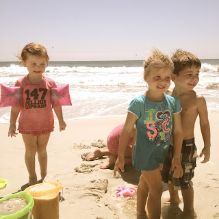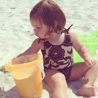 And Emma's favorite thing? Playing on the beach and in the sand. She still ate sand this year (I thought for sure she would have outgrown that at 21 months) :(. But she just loved playing with it in shovels, pails, and or just running around on it! Here she is doing "cartwheels"...trying to keep up with her big cousins :).